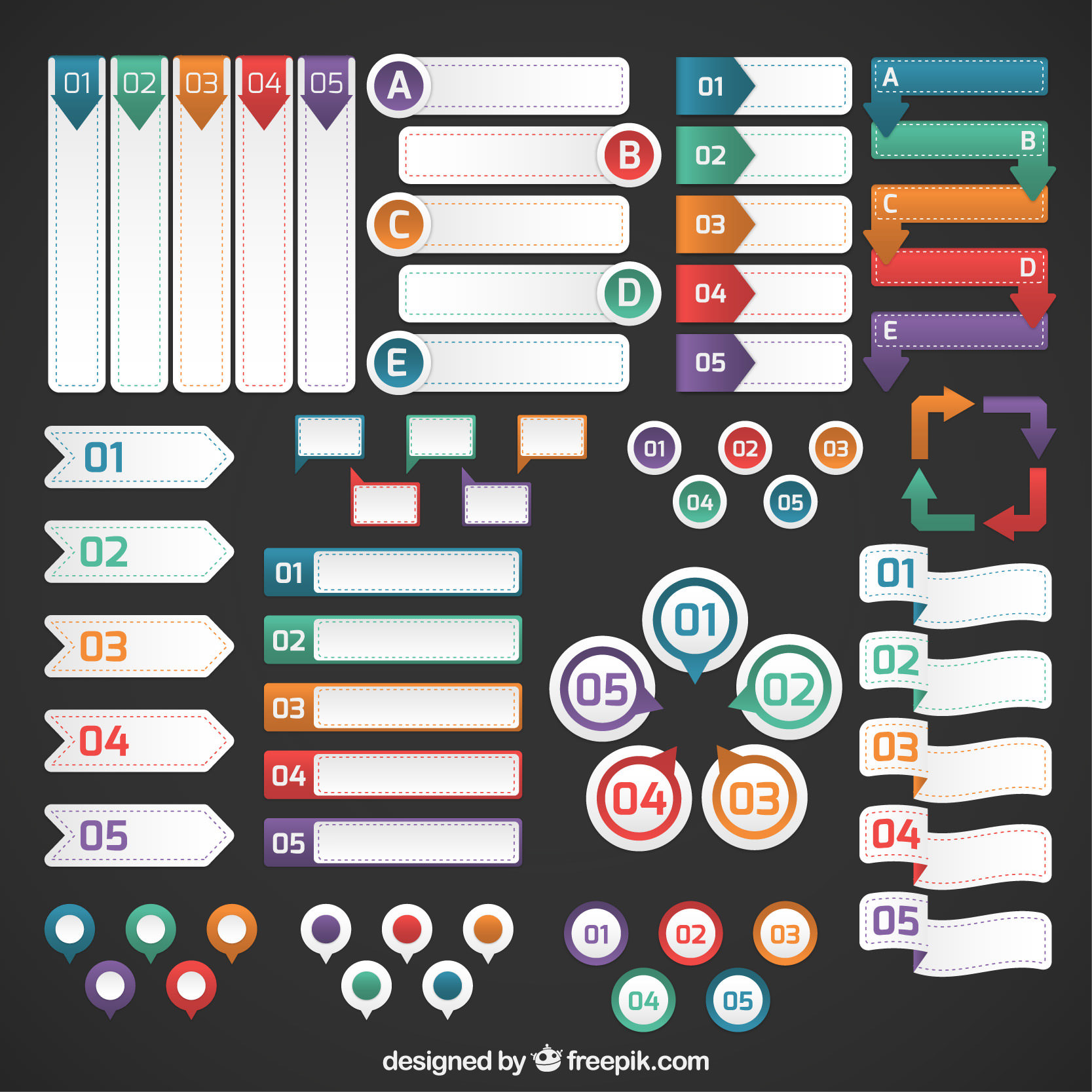 무료 인포그래픽 배너 모음은 5가지 세트로 나뉘어 각 세트는 고유 한 색 구성표와 테마로 구성되었다. 파일은 AI 및 EPS 형식으로 제공된다. 인포그래픽 배너 모음 요소들은 인포그래픽, 그래픽 디자인, PPT 파워포인트, 광고 홍보물 제작에 활용할 수 있다. 무료 다운로드하려면 이메일을 입력하면 된다.