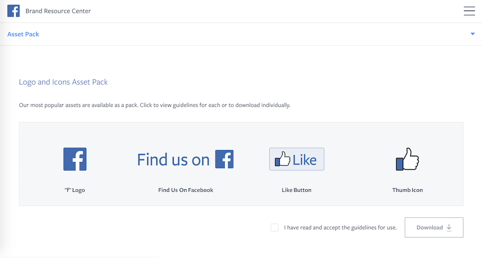 브랜드 자산 디렉터리는 해당 브랜드 웹사이트의 자산 관리 페이지로 링크되어 있는 방식이다. 이는 브랜드 자산의 변경이나 업데이트에 제대로 반영하기 위한 것으로 보인다.