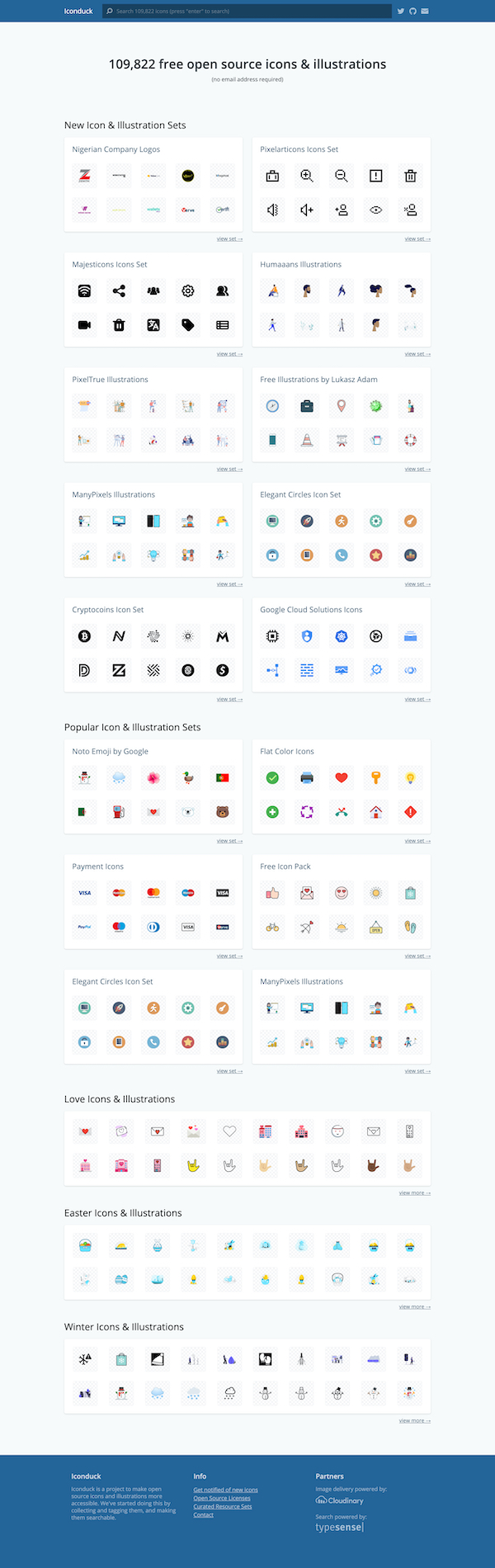아이콘 덕(Iconduck)은 109,822개 이상의 무료 아이콘, 일러스트레이션, 그래픽 및 이모티콘 리소스를 제공한다. 이 프로젝트의 목적은 오픈 소스 아이콘과 일러스트레이션의 접근성을 높이는 데 있다.