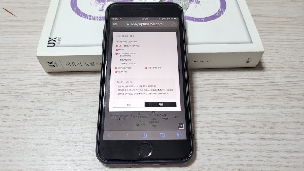 유심 구입 후 개통은 유플러스 알뜰모바일 다이렉트몰에서 셀프 개통으로 10분이면 충분하다고 한다.