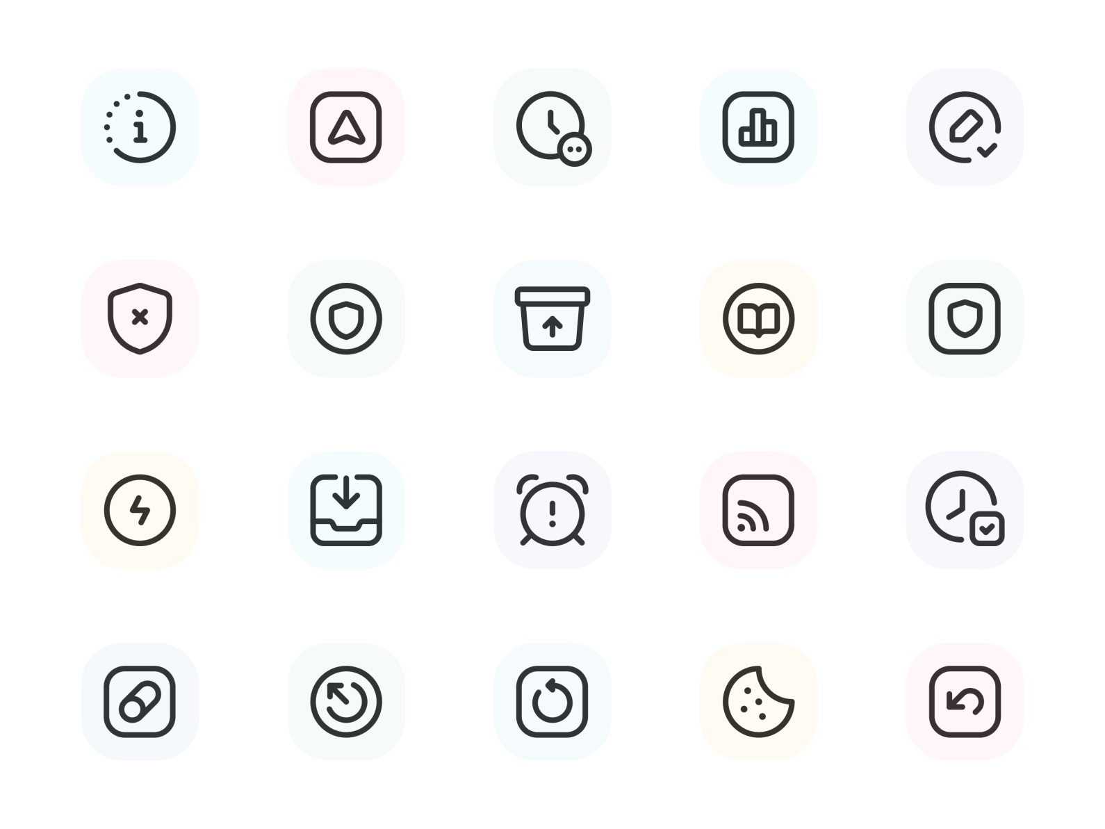 모든 아이콘이 정확히 동일하게 보이는 것은 아니지만 전체적으로 일관된 속성을 사용하면 아이콘 세트를 하나로 모을 수 있습니다. 어떤 시각적 요소를 사용하든 아이콘 라이브러리에 대한 지침을 설정하면 일관성과 품질이 보장됩니다.