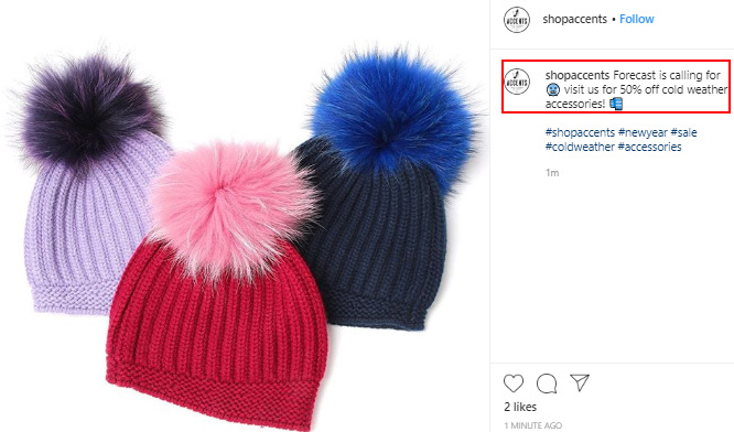 청중과 대화를 시작하려면 캡션에 질문을 한두 개 추가할 수 있습니다. 팔로워에게 제품에 대한 의견을 공유하도록 요청하거나 게시물과 관련된 기타 질문을 할 수 있습니다.