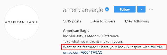 또한, 브랜드 해시 태그(#)를 만들어 바이오에 넣는 것이 좋습니다. 이러한 방식으로 고객이 더 많은 콘텐츠를 생성하고 브랜드에 대한 소문을 전파하도록 장려할 수 있습니다.
