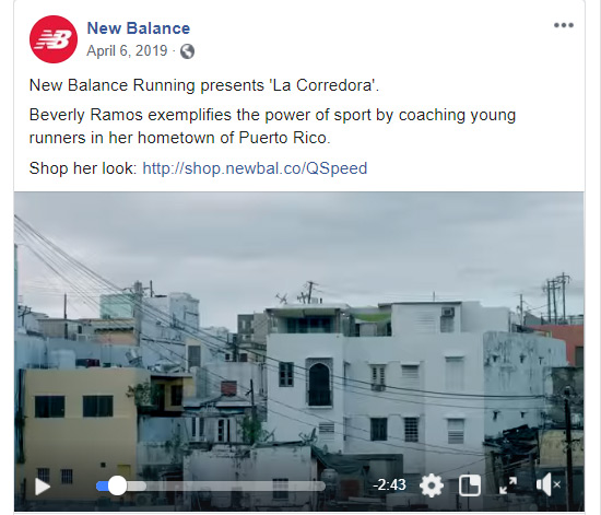 다음 스크린 샷을 보십시오. 회사가 소셜 미디어에서 스토리텔링을 어떻게 사용할 수 있는지 보여주는 훌륭한 예입니다. 뉴발란스(New Balance)는 유명한 운동선수들이 사회에 어떻게 기여하는지에 대한 영감을 주는 일련의 이야기를 공유했습니다. 게시물에서 회사는 Beverly Ramos의 이야기를 들려줍니다.