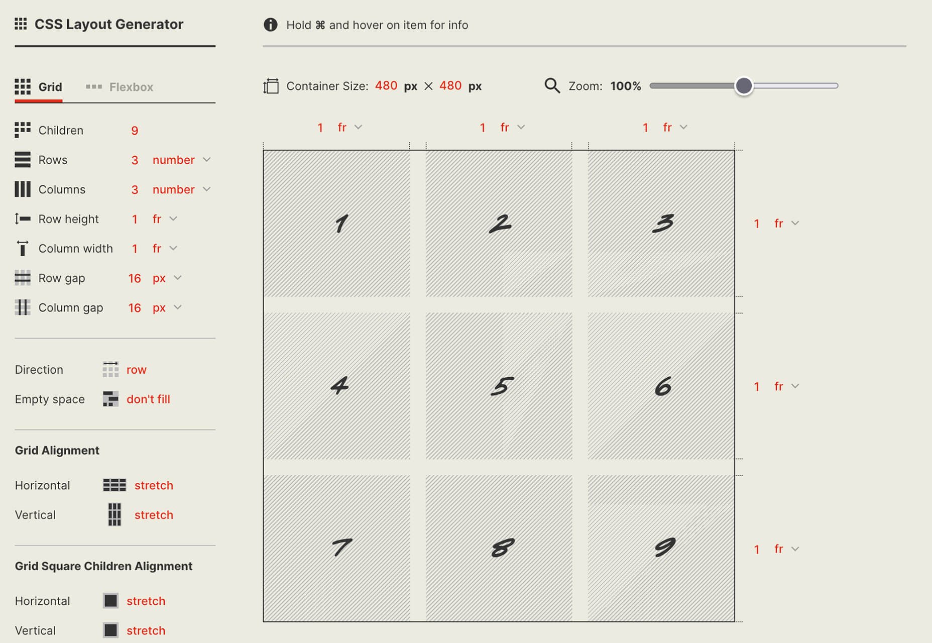 CSS 레이아웃 생성기는 레이아웃 구성 요소의 CSS를 만들기 위한 최적의 도구다. 또한 브라우저에서 구성 요소를 배치하기 위해 CSS에서 가능한 것을 가르치는 학습 도구이기도 하다. 제공되는 옵션을 조정하여 레이아웃을 완성하고 CSS 및 HTML 코드를 실시간으로 확인하고 활용할 수 있다는 것이 장점이다.