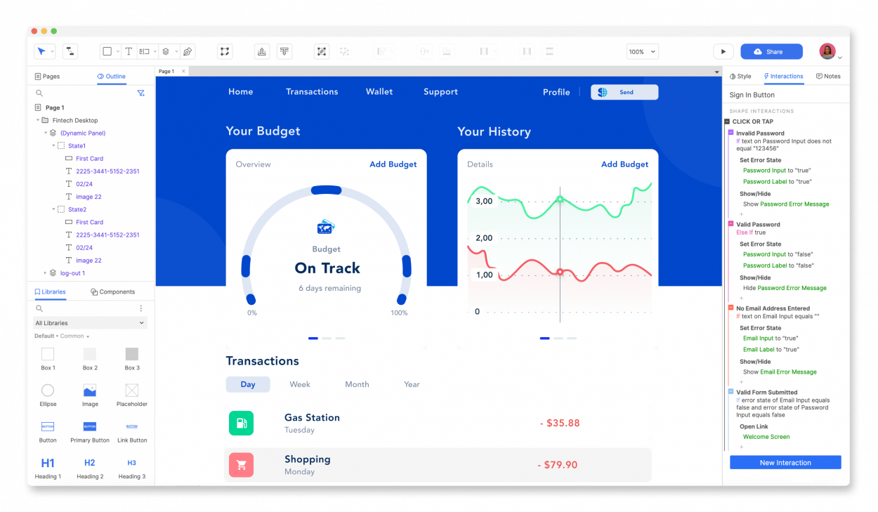 액슈어(Axure)에는 팀 내에서 UI 구성 요소를 공유하는 데 사용할 수 있는 공유 구성 요소 라이브러리가 있습니다. 액슈어 클라우드(Axure Cloud) 또는 내부 서버에 프로젝트를 게시하면 팀이 구성 요소 라이브러리를 사용하거나 업데이트할 수 있습니다. 현재 Axure는 색상 또는 글꼴 토큰을 지원하지 않지만 비주얼 스타일 가이드는 수동으로 또는 액슈어(Axure)의 스타일 시스템을 통해 업데이트할 수 있습니다. 액슈어(Axure)는 피그마(Figma) 및 스케치(Sketch)에서 디자인 자산을 가져올 수 있지만 구성 요소 라이브러리는 수동으로 생성해야 합니다.
