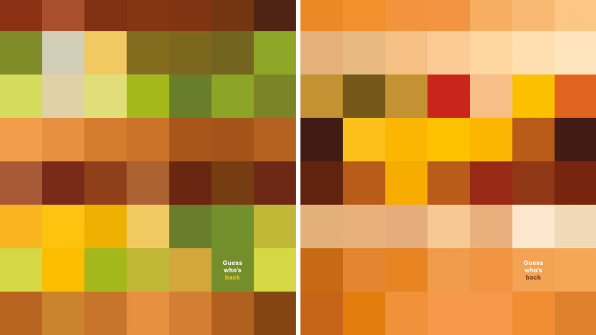 광고는 "누가 돌아왔는지 맞춰보세요"라는 슬로건과 함께 골든아치(Golden Arches) 클래식의 70픽셀 이미지다. 색상 조합은 한 가지를 제외하고는 거의 구별할 수 없다. 우리 모두는 살면서 즉시 알아볼 수 있을 정도로 많은 맥도날드 광고를 봐왔다. 갈색, 황갈색 및 녹색의 콜라주? 물론 빅맥이다. 밝은 노란색, 완전한 빨간색으로 변색? 감자튀김인거 알게 된다