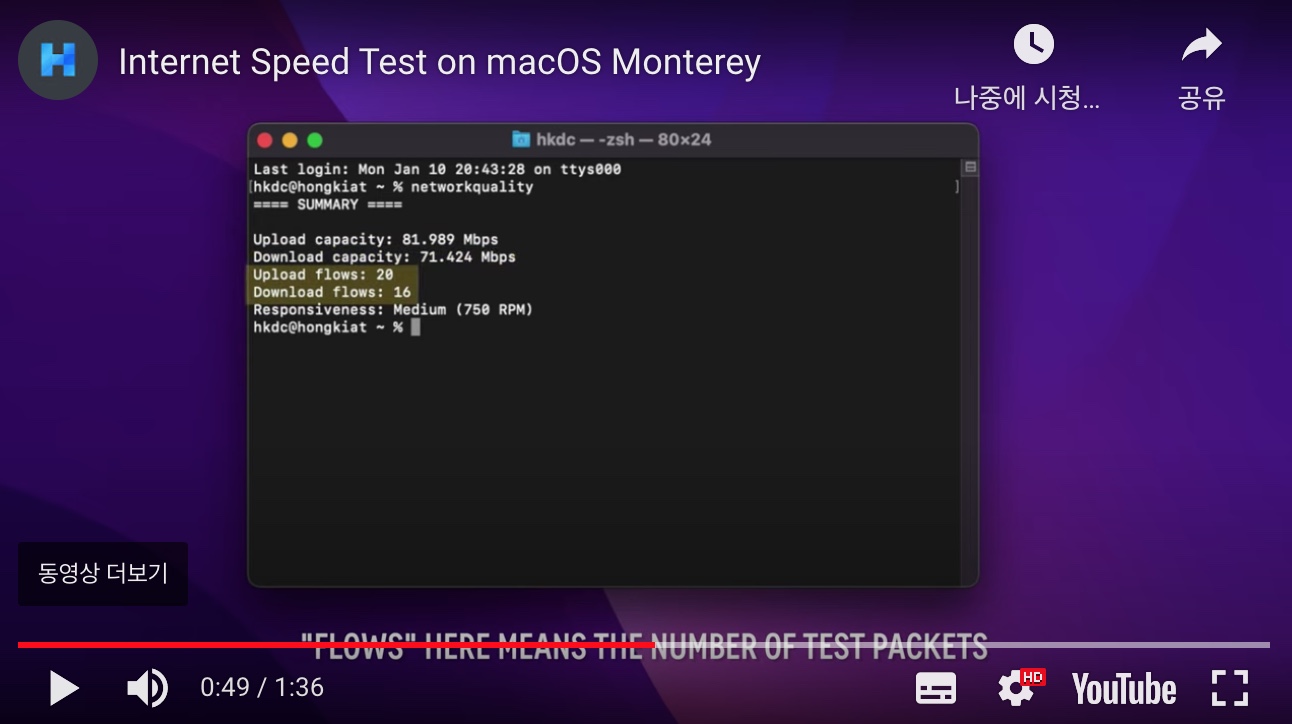 networkQuality 명령어를 통해 업로드 및 다운로드 속도, 업로드 및 다운로드 흐름, 인터넷 연결 응답성을 보여줘 쉽게 확인할 수 있습니다. 아울러 더 새로운 트릭을 배우고 싶다면 아래 내용을 참고해 보길 바랍니다.