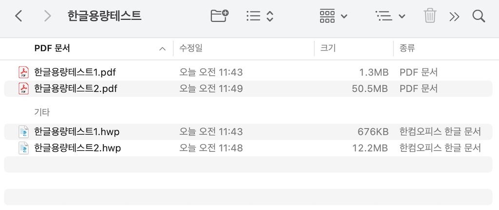 기본적으로 한글 문서는 텍스트 중심으로 작성하는 경우가 많아 몇 가지 이미지를 첨부하더라도 파일 용량이 놀랄 정도로 커지는 경우가 많지 않지만, 제안서나 보고서 등 페이지 수가 많고, 삽입된 이미지가 많은 경우 한글 문서의 파일 용량은 의외로 커질 수 있다. 더군다나 PDF로 내보내기를 했을 때, 최소 50배~100배 정도 대용량 파일로 저장되어 상상을 초월해 놀라는 경우가 더러 있다.