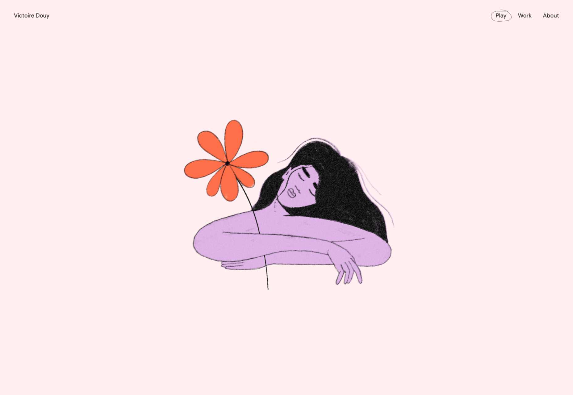 또는 덜 로드된 디자인의 예를 보려면 Victoire Douy 의 개인 포트폴리오를 살펴보십시오. 또한 디자인에 상호 작용을 추가하는 애니메이션도 포함되어 있습니다. 예를 들어 소녀의 손 그림자를 가지고 놀 수 있습니다.