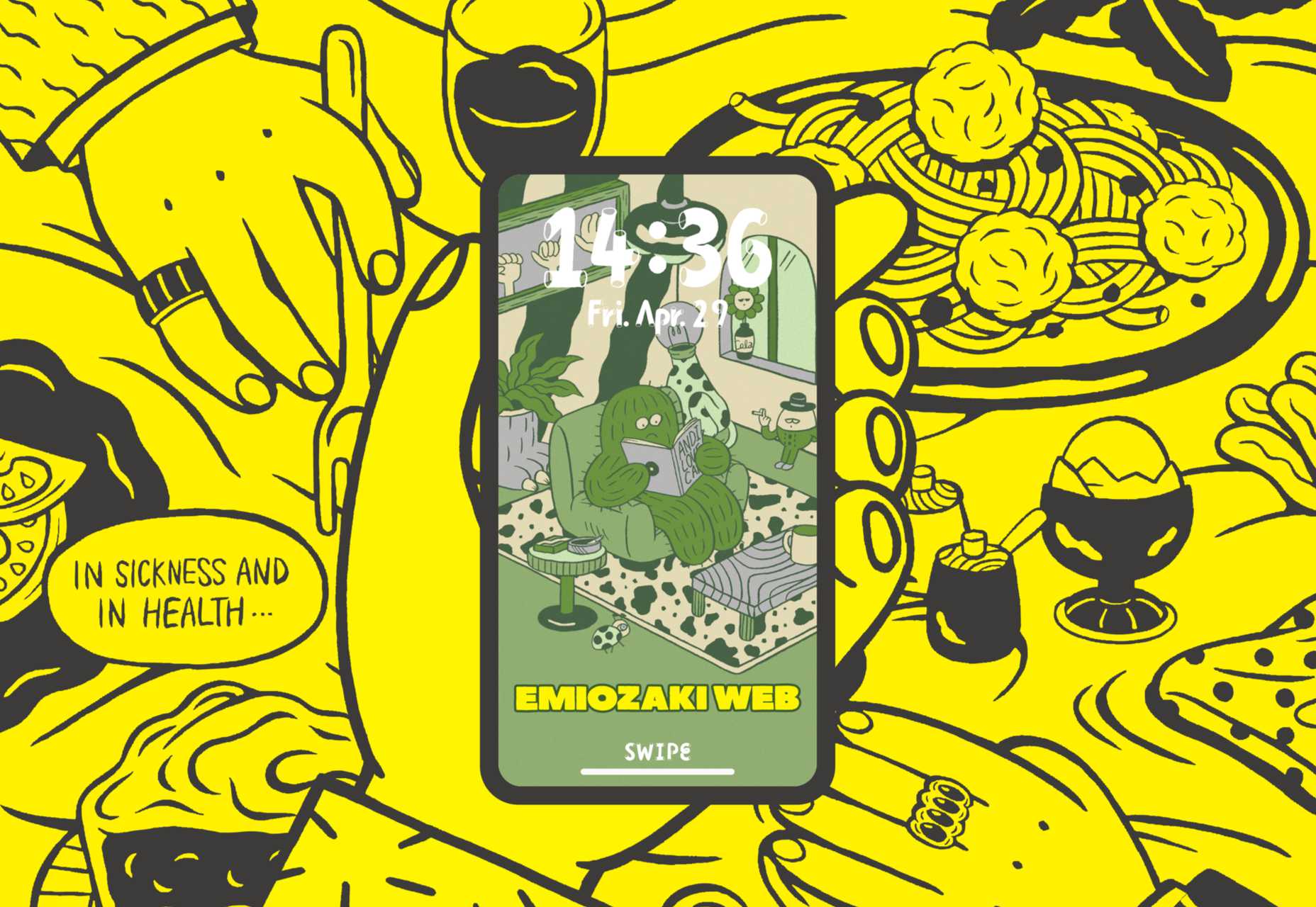 에미오자키 웹 사이트를 간단히 살펴보십시오. 탐색 메뉴를 대체하는 태블릿 형태로 제작된 개인화 일러스트레이션과 애니메이션이 포함되어 있습니다.