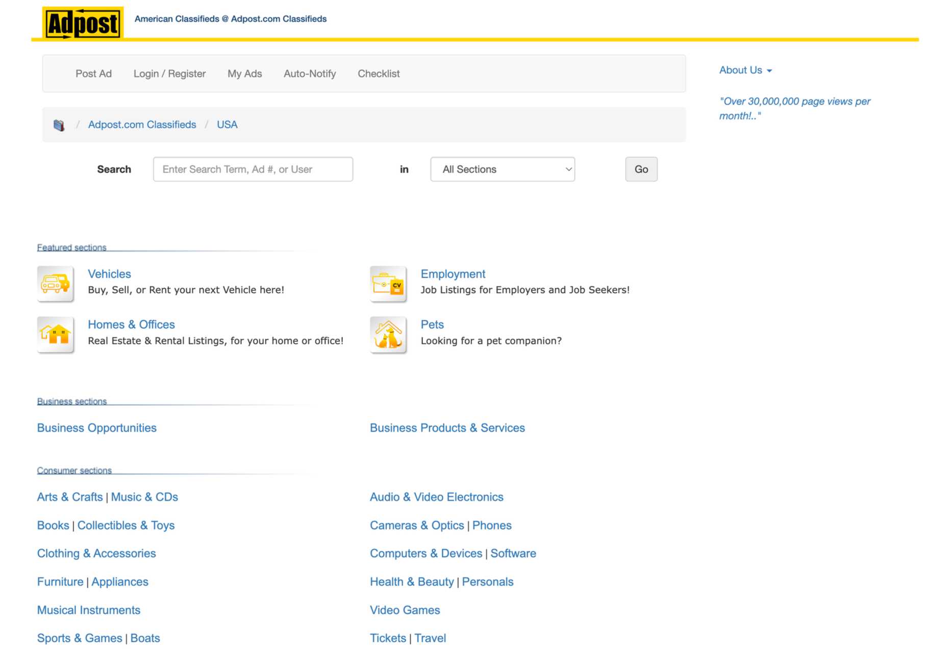Craigslist에 대해 언급했으므로 더 나은 웹사이트 구조를 가진 경쟁자 AdPost 를 살펴보겠습니다.