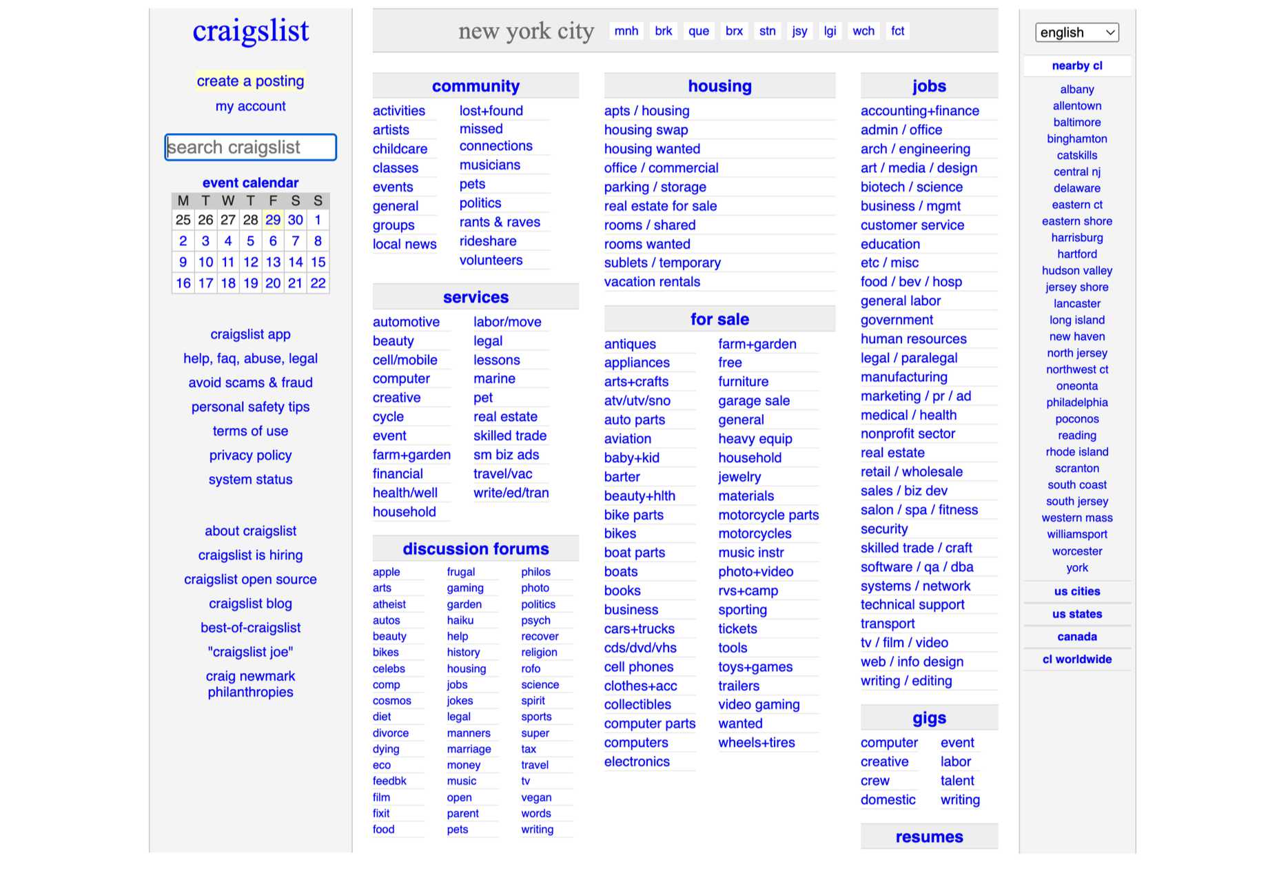 예를 들어 Craigslist 를 보자. 허용되는 평균 로드 시간이 1.7초를 넘지 않아야 할 때 로드하는 데 30초 이상이 걸렸다는 점은 말할 것도 없고 탐색이 사용자 친화적이지 않습니다.
