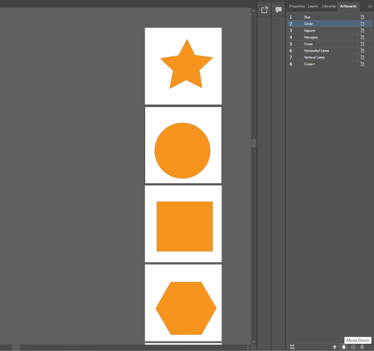 4단계: 아트보드를 선택한 후 탐색 버튼(위 또는 아래로 이동 화살표)을 사용하여 해당 아트보드를 배치할 위치로 아트보드를 위아래로 이동한다.