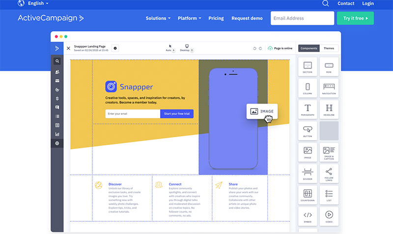 다양한 도구를 사용할 수 있지만 우리는 Active Campaign을 좋아한다. 랜딩 페이지를 간단하게 디자인할 수 있는 플랫폼이다.