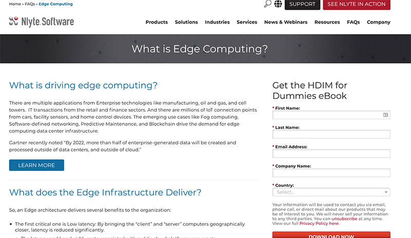 이 정보 페이지에는 관련 정보, 통계 및 견적이 포함되어 있다. Nlyte는 이 공간을 최대한 활용하여 잠재고객 생성 기회를 창출했다.