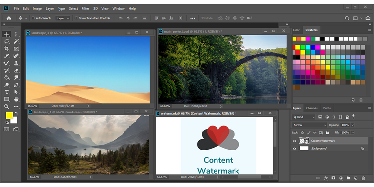 이 방법은 끌어서 놓기 방법과 유사합니다. 그러나 Photoshop 문서가 여러 개 열려 있고 레이어(예 : 로고 포함)를 모든 문서에 복사해야하는 경우 더 효율적이다. 방법은 다음과 같다.