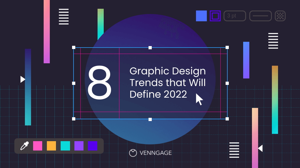 이 멋지고 훌륭한 인포그래픽은 그래픽 디자이너가 깊이 빠져들 수 있는 영감으로 가득 차 있습니다. 세리프 글꼴에서 포괄적인 시각 효과에 이르기까지 Venngage는 2022년의 8가지 그래픽 디자인 트렌드를 예측하고 아래 인포그래픽에 모두 담았습니다.
