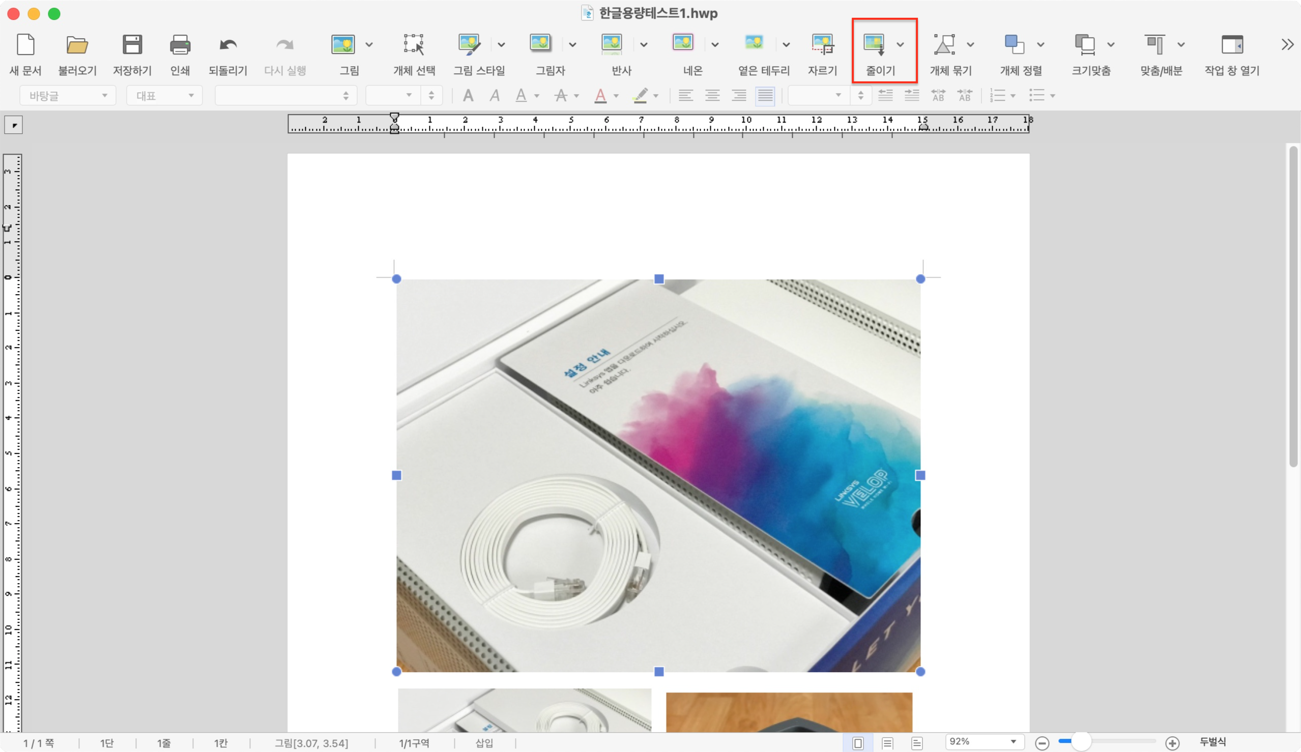 2. 상단 메뉴 바에 나타나는 그림 관련 속성 아이콘에서 [줄이기] 아이콘을 클릭한다.